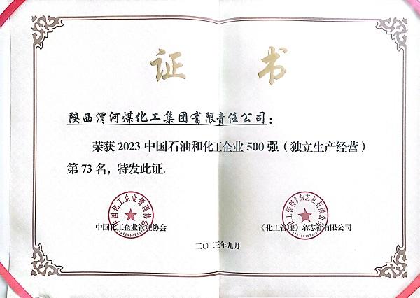 2023年9月公司榮獲2023中國石油和化工企業(yè)500強