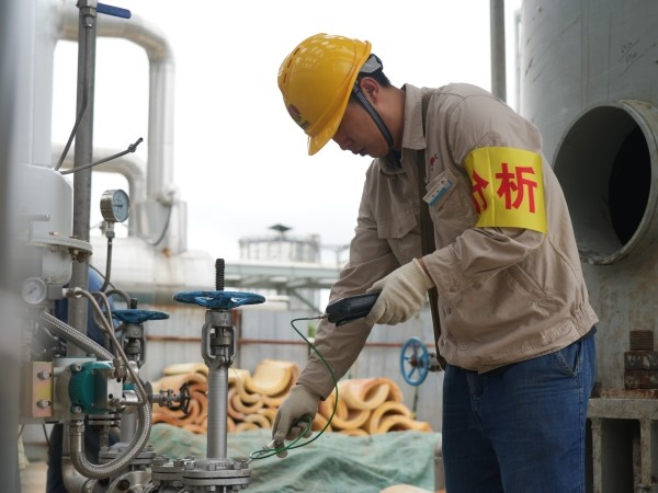 在彬州公司中修現(xiàn)場,他們是嚴謹?shù)摹鞍踩l(wèi)士”。頭戴黃色安全帽,臂佩“分析”袖章,專注檢測設(shè)備,用儀器探尋隱患。無論是管道閥門,還是罐體孔洞,每一處都細致排查。攀爬、蹲守,記錄數(shù)據(jù),他們以專業(yè)與認真,守護生產(chǎn)安全,筑牢化工生產(chǎn)的“安全防線” 。